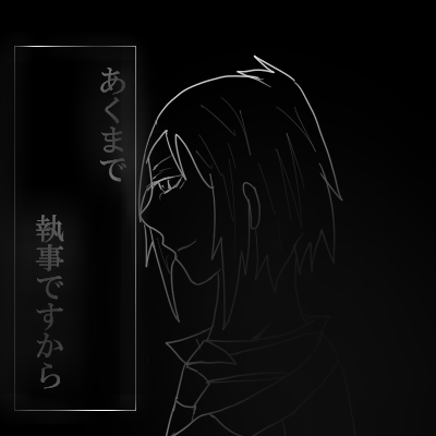 たぶん今日中にもっかい更新すると思います。昨日インターネット繋がらなくて二枚落書き描いたのでうpしときます。Dグレ(ミニマム(ラビ彦もやし加藤笑(妹に「最悪」って言われた絵)と黒執事(モノクロ(セバス(全然似てなくて困る)。