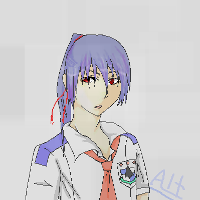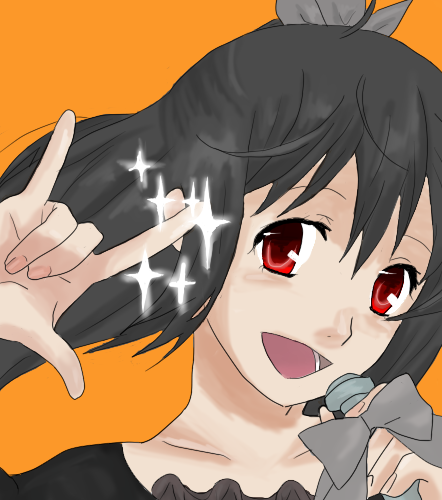 髪ゴム(違)赤色だし、パッツン(?)だし・・・!