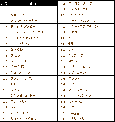 14番目は・・・だってまだよくわからないキャラだし・・・ね。